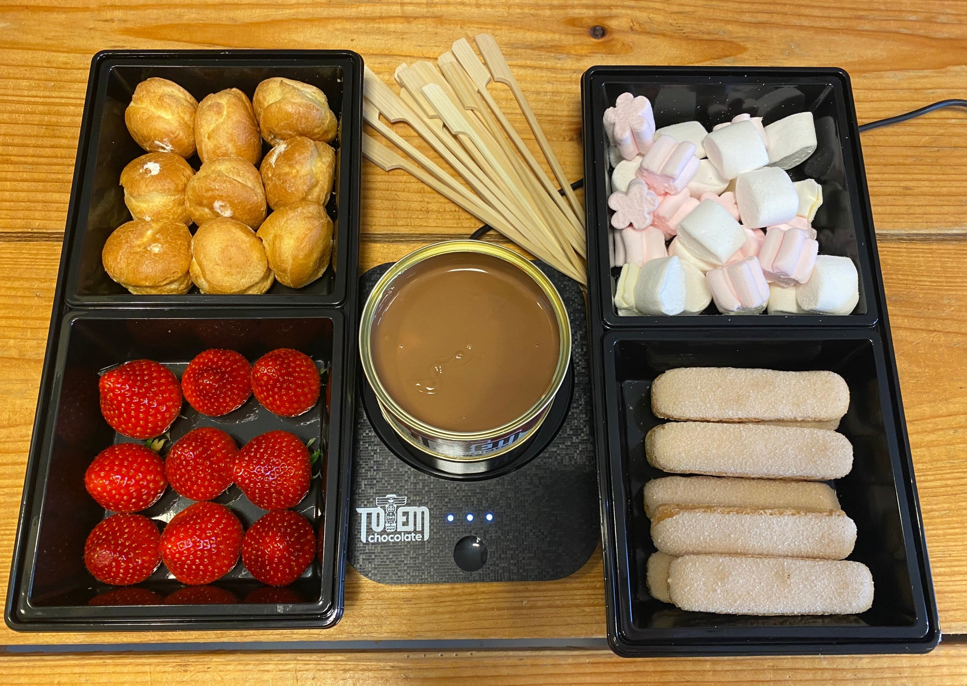 Het blikje chocolade verwarm je gemakkelijk binnen 30 minuten met het warmhoudplaatje. Wanneer je het blikje eraf haalt blijft de chocolade gedurende langere tijd vloeibaar en bruikbaar.