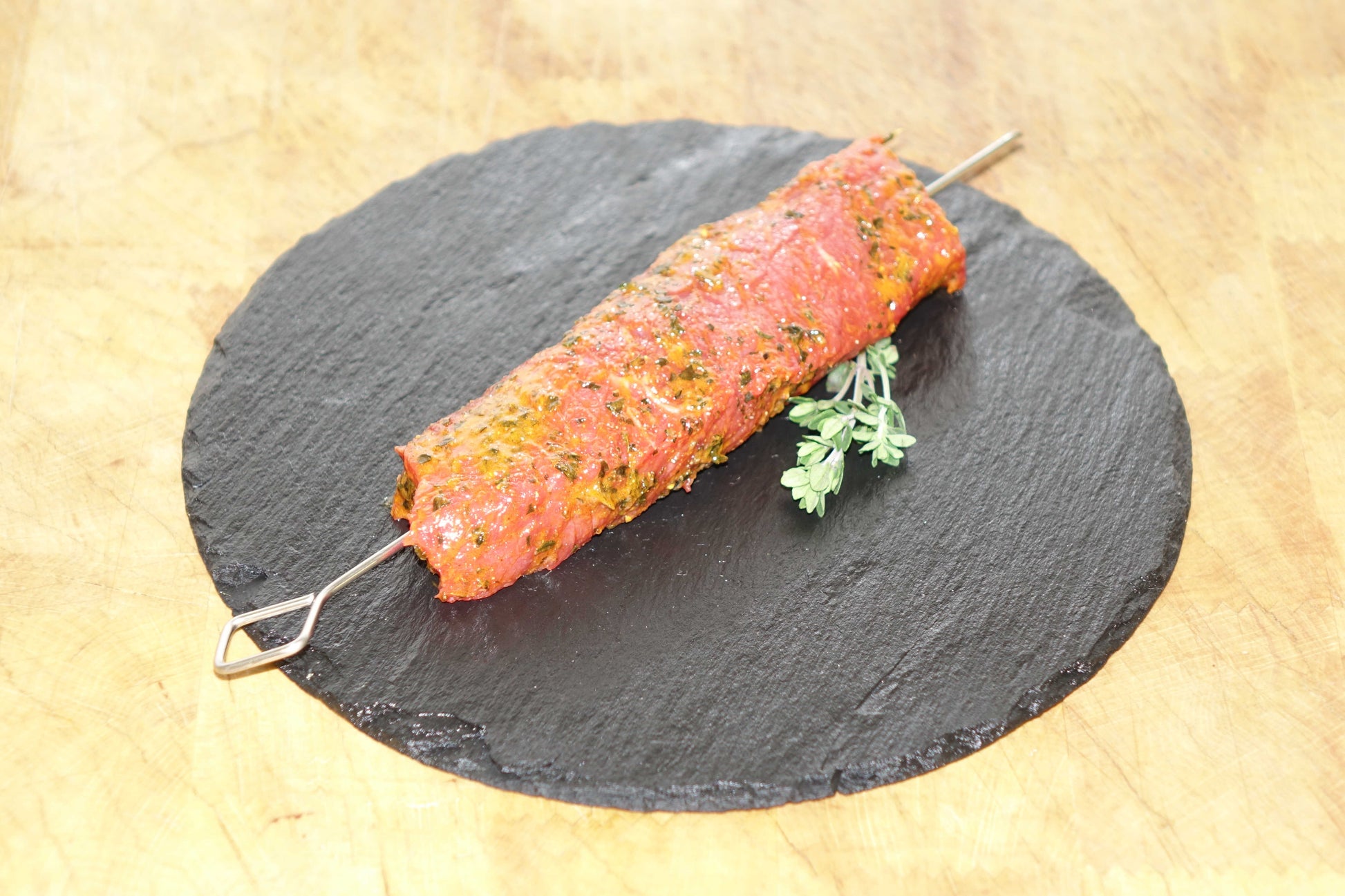 Onze biefstukspiesen worden gesneden van de dikke plaat van de Belgische dikbilkoe. Deze koe krijgt enkel gras gevoerd en loopt vrij rond, dat proef je! De runderspies wordt gekruid met een lekkere marinade voor de ultieme smaakbeleving.