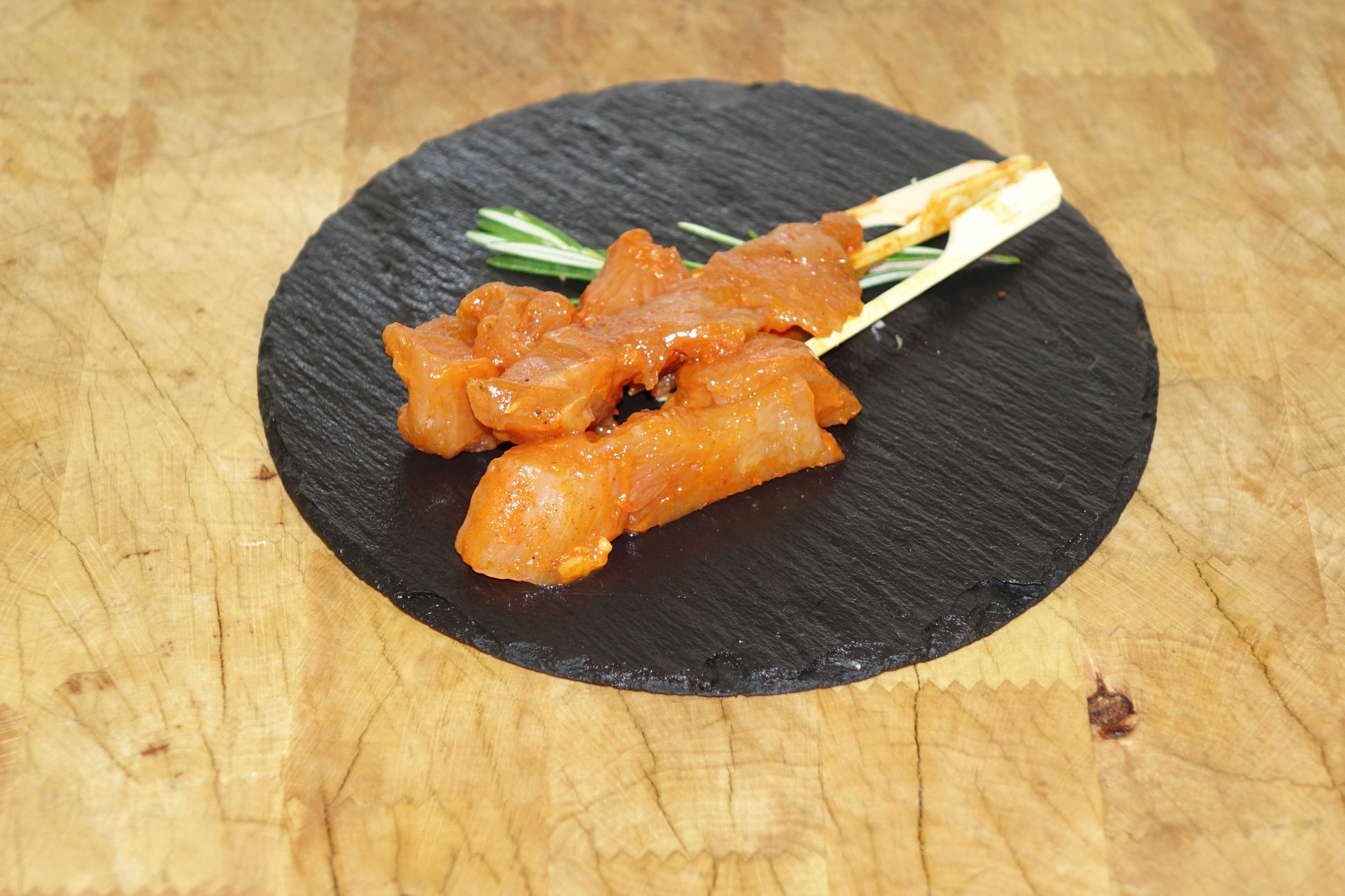Malse, gemarineerde kipfilet, een portie kipsaté bestaat uit 3 stokjes.